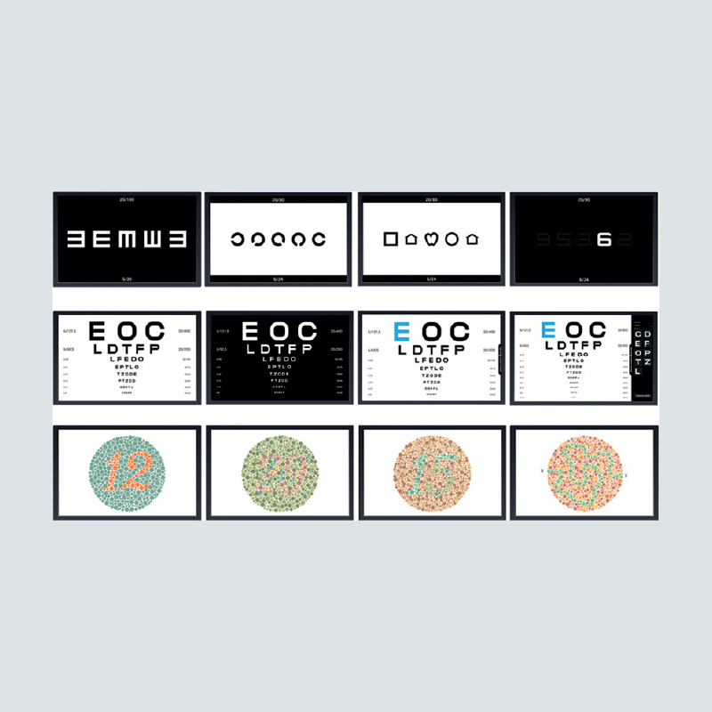 • Snellen table customizable 20/400 to 20/10.